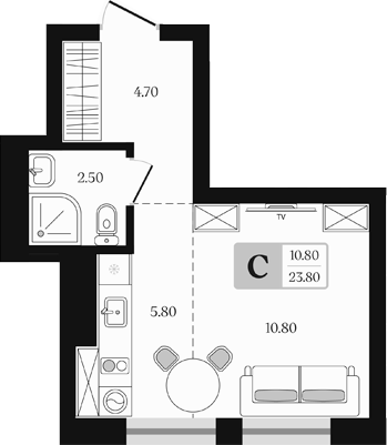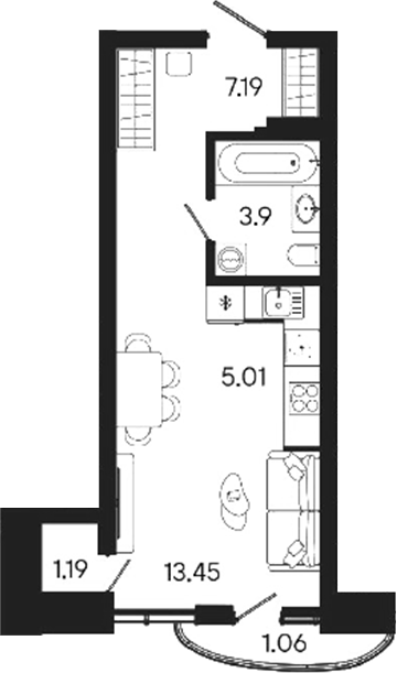 *Светлая, так как 2 окна, что редкость для студий.